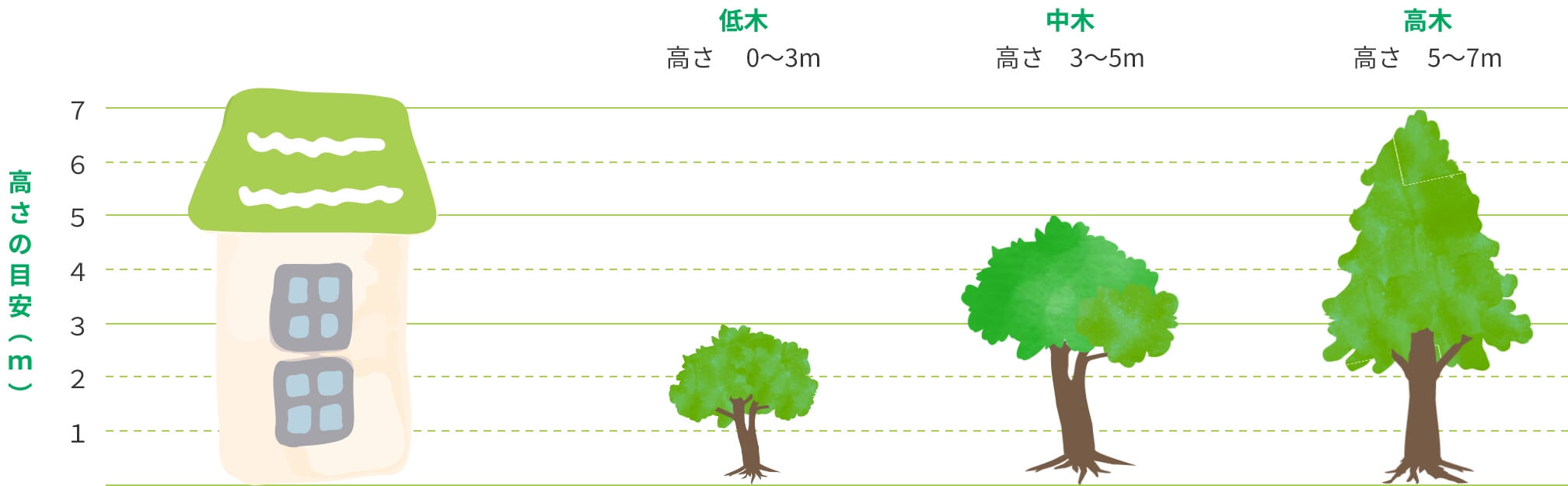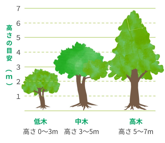 低木 0~3m | 中木 3~5m | 高木 5~7m | |